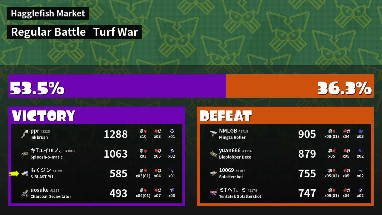 | Medals | #1 Popular Target #1 Splat Assister #1 Base Defender | ||