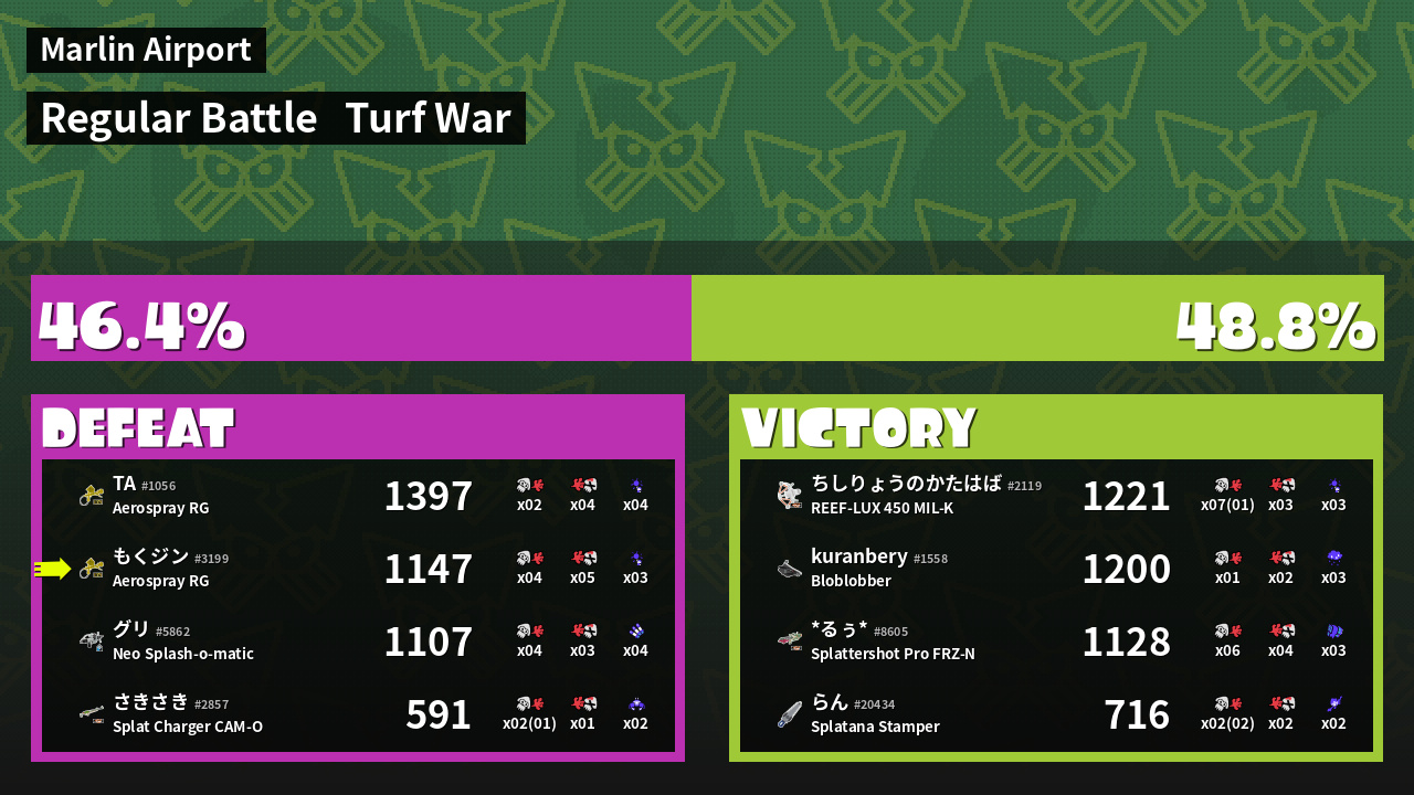 | Mode | Turf War - Regular Battle | ||