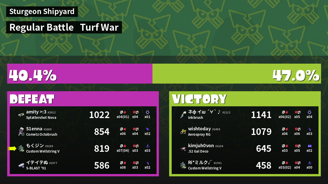 | Medals | #1 Enemy-Base Inker #1 Splat Assister #1 Ink Consumer | ||