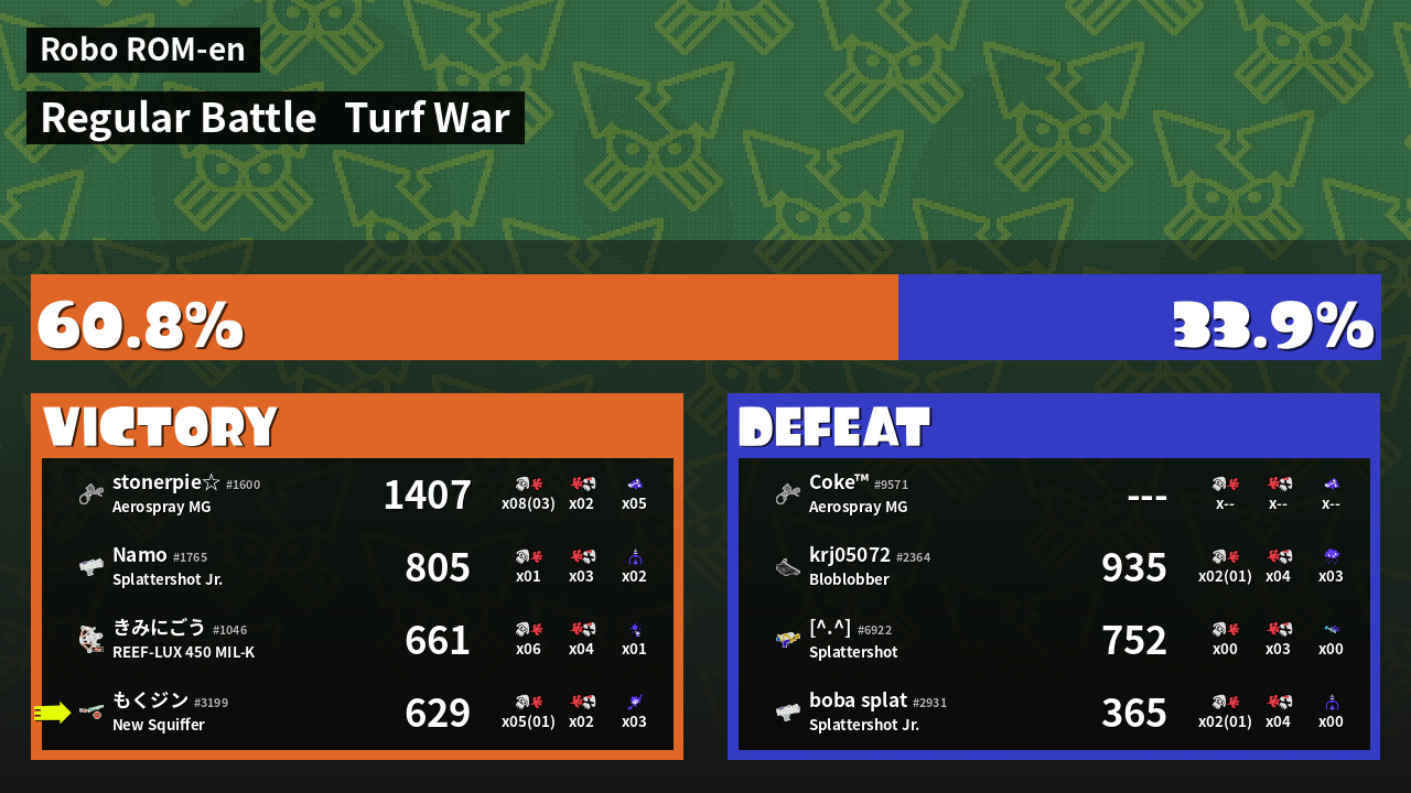 | Mode | Turf War - Regular Battle | ||