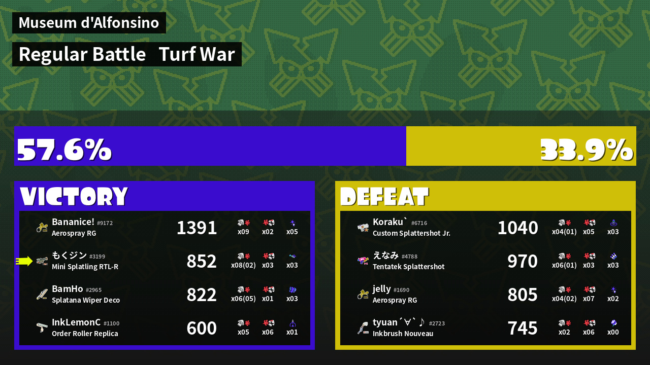 | Mode | Turf War - Regular Battle | ||