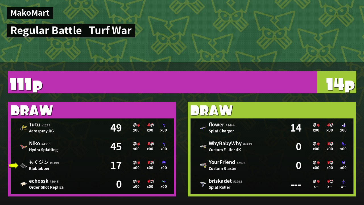 | Weapon | Bloblobber ( Sprinkler / Ink Storm) | ||