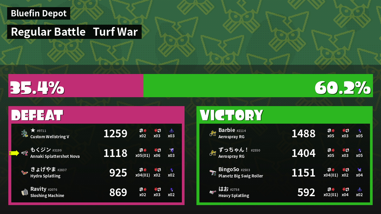 | Mode | Turf War - Regular Battle | ||