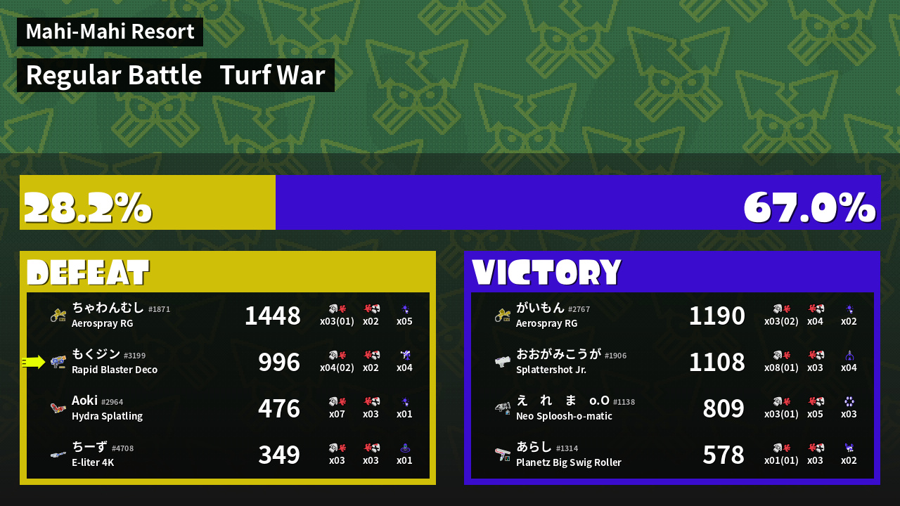 | Medals | #1 Enemy-Base Inker #1 Splat Assister #1 Damage Taker | ||