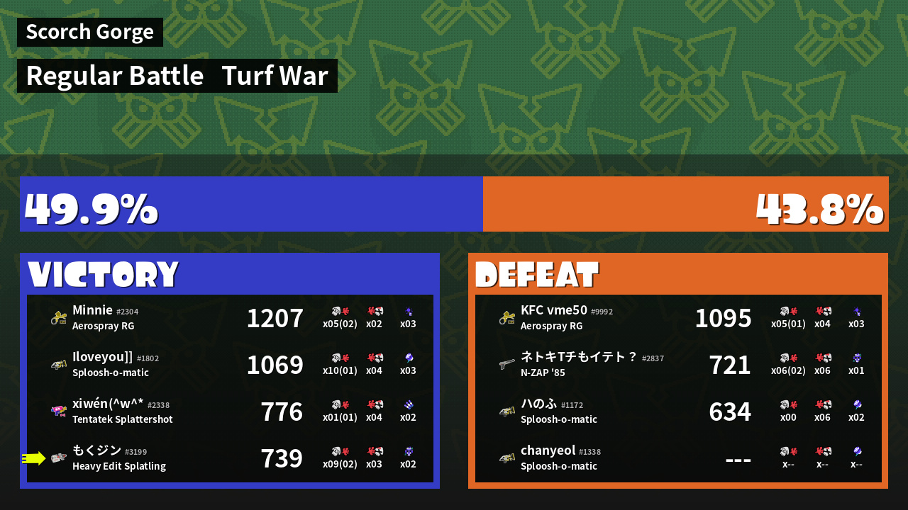 | Mode | Turf War - Regular Battle | ||