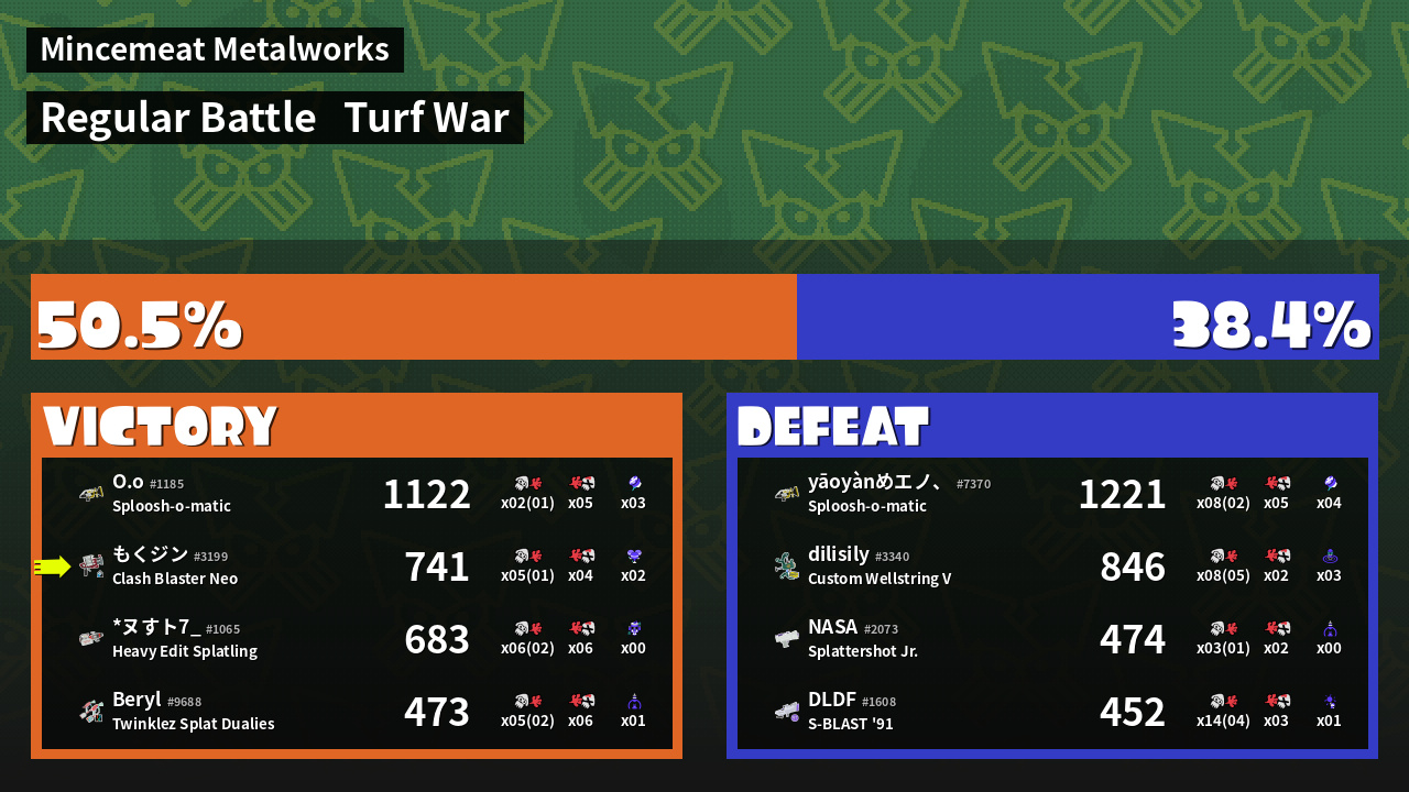 | Medals | #1 Enemy-Base Inker #1 Enemy Splatter #1 Ink Consumer | ||