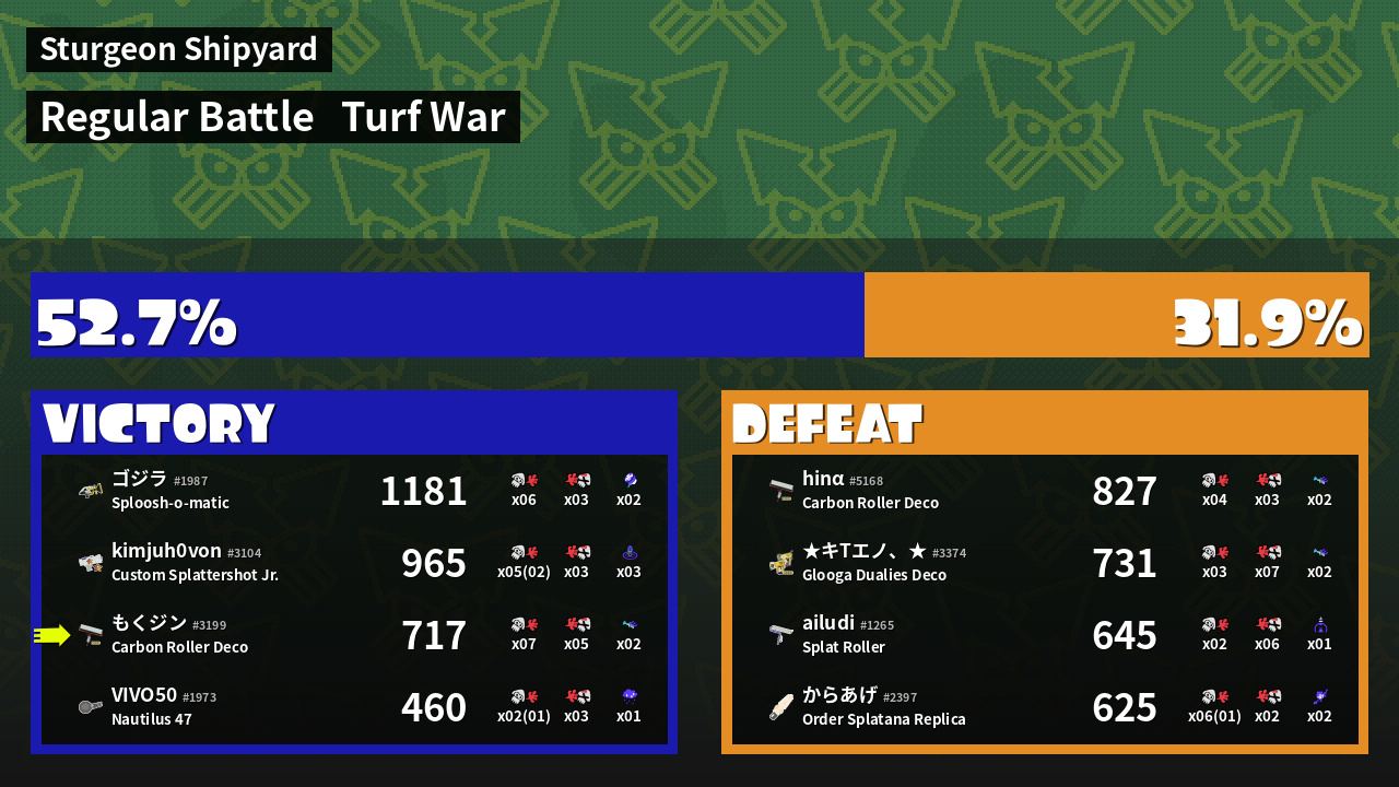 | Mode | Turf War - Regular Battle | ||