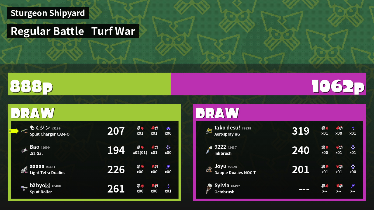 | Weapon | Splat Charger CAM-O ( Sprinkler / Crab Tank) | ||