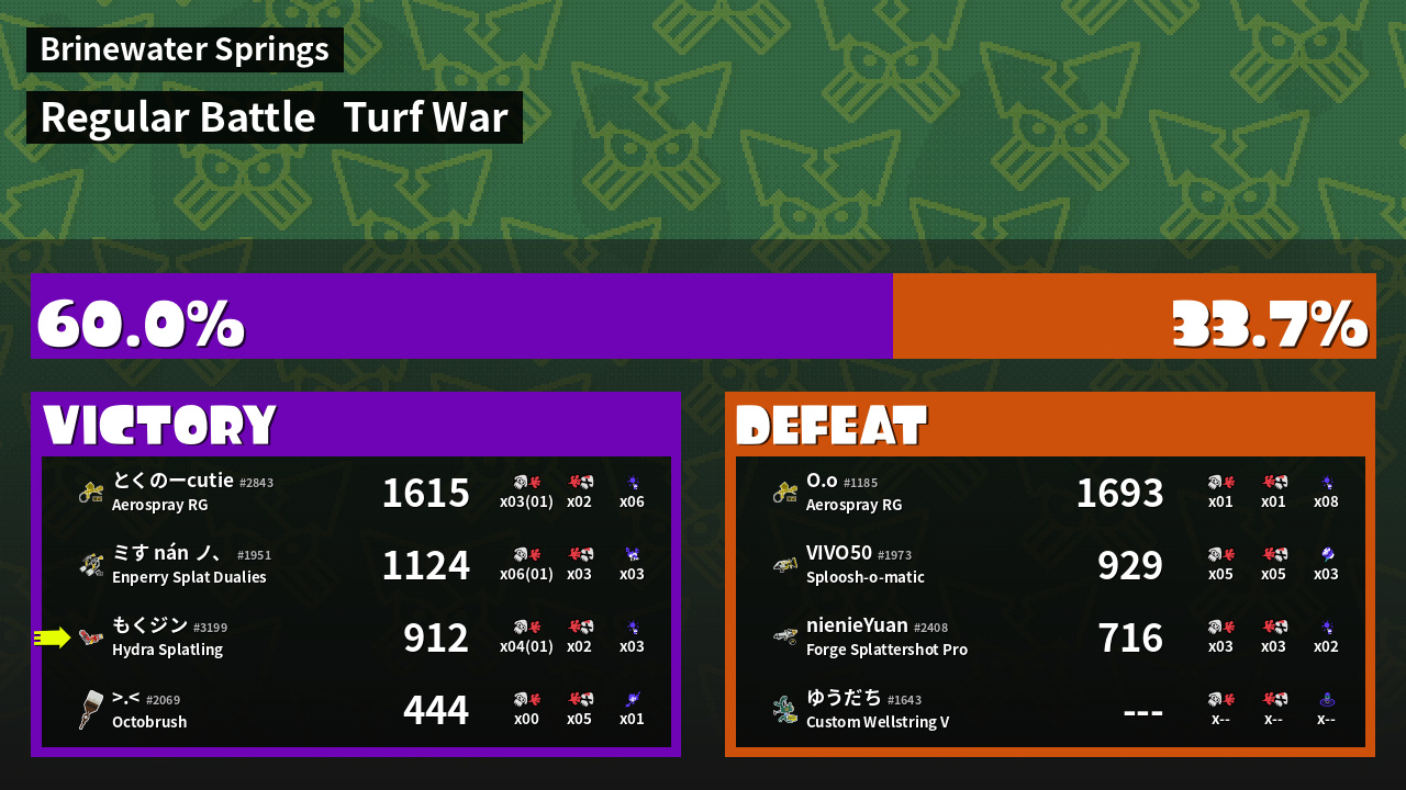 | Mode | Turf War - Regular Battle | ||