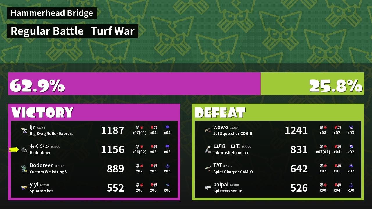 | Medals | #1 Popular Target #1 Splat Assister #1 Ground Traveler | ||