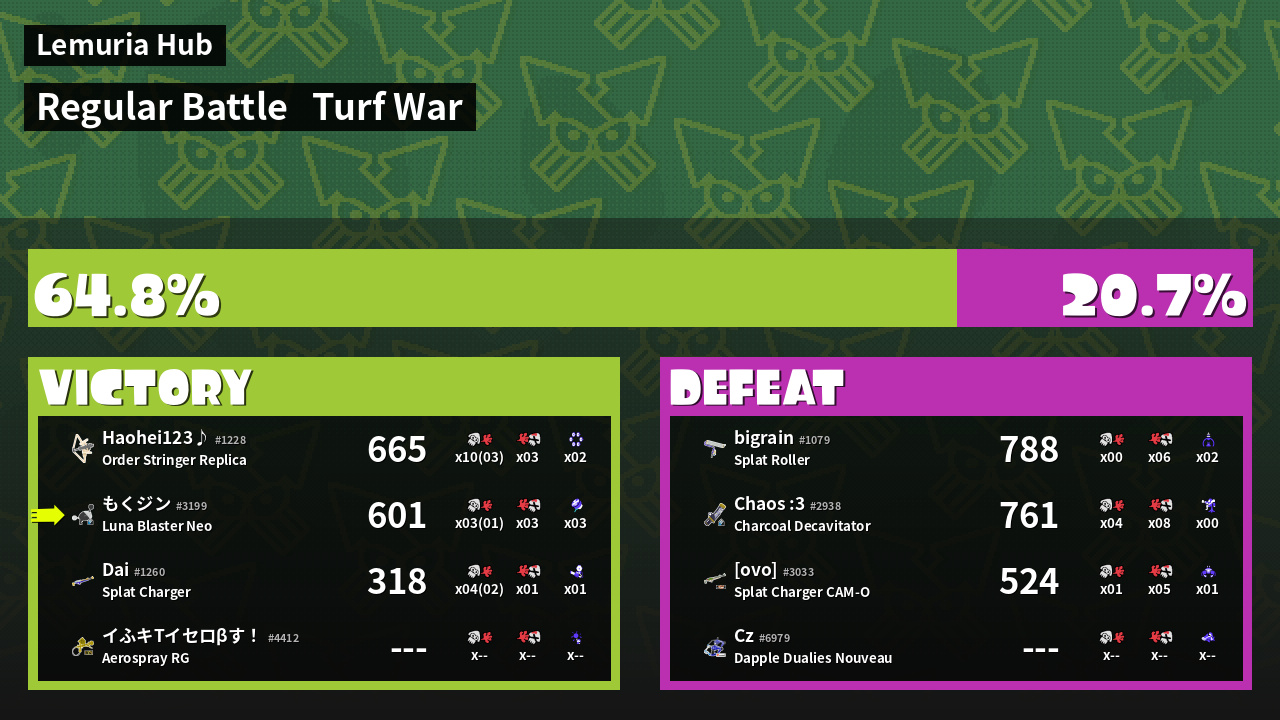 | Mode | Turf War - Regular Battle | ||