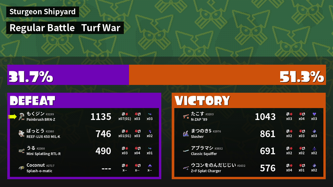 | Mode | Turf War - Regular Battle | ||