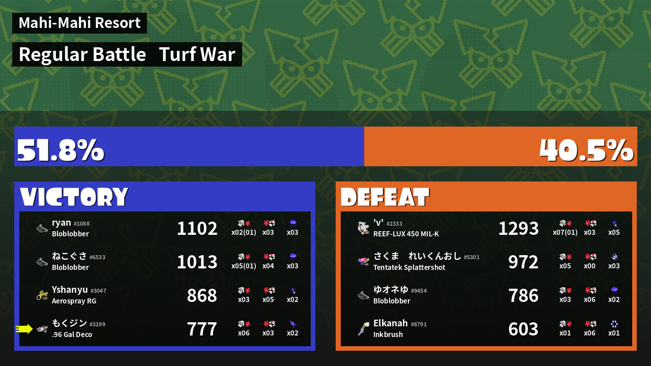 | Mode | Turf War - Regular Battle | ||