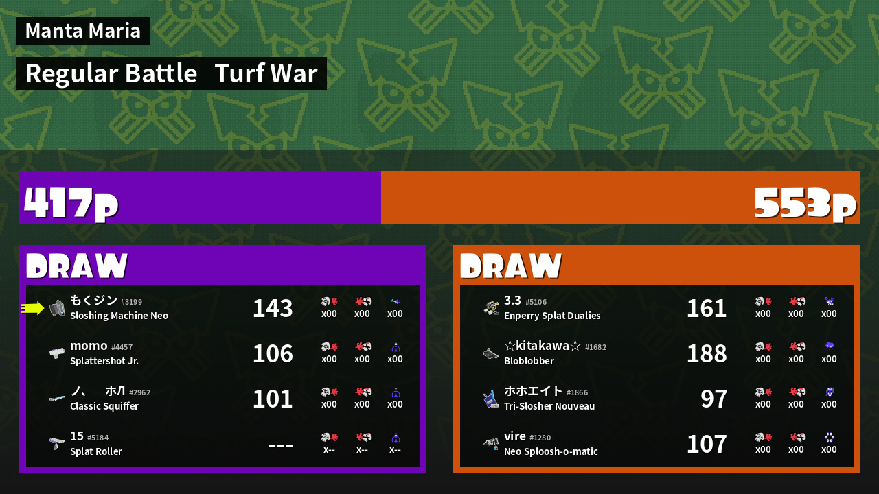 | Mode | Turf War - Regular Battle | ||