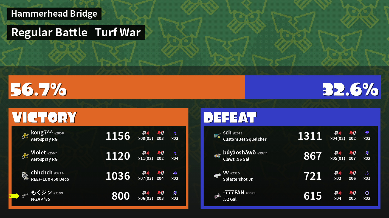 | Mode | Turf War - Regular Battle | ||