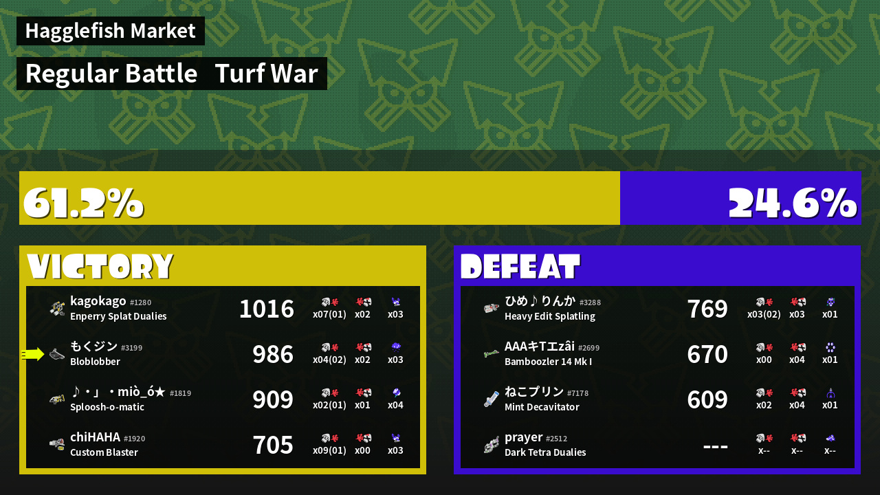 | Medals | #1 Splat Assister #1 Damage Taker #1 Ink Storm User | ||