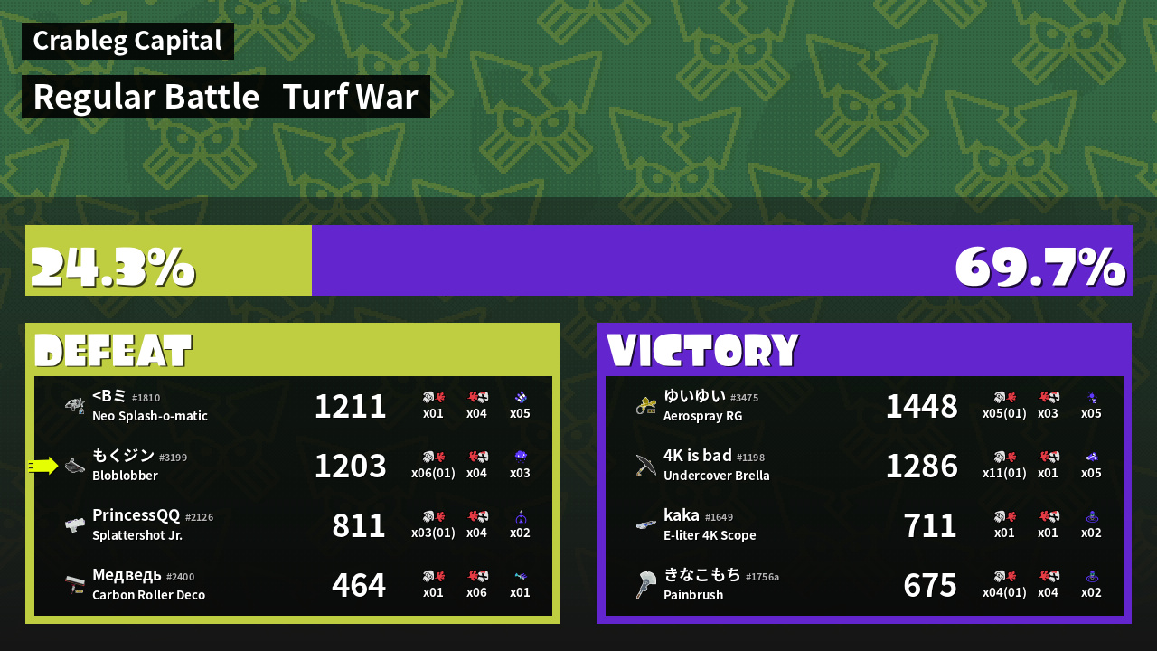 | Medals | #1 Overall Splatter #1 Popular Target #1 Enemy-Base Inker | ||