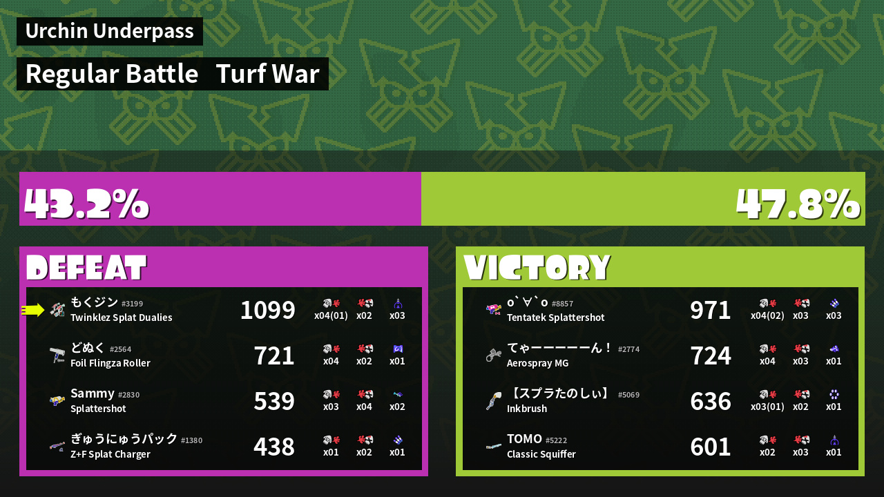 | Mode | Turf War - Regular Battle | ||