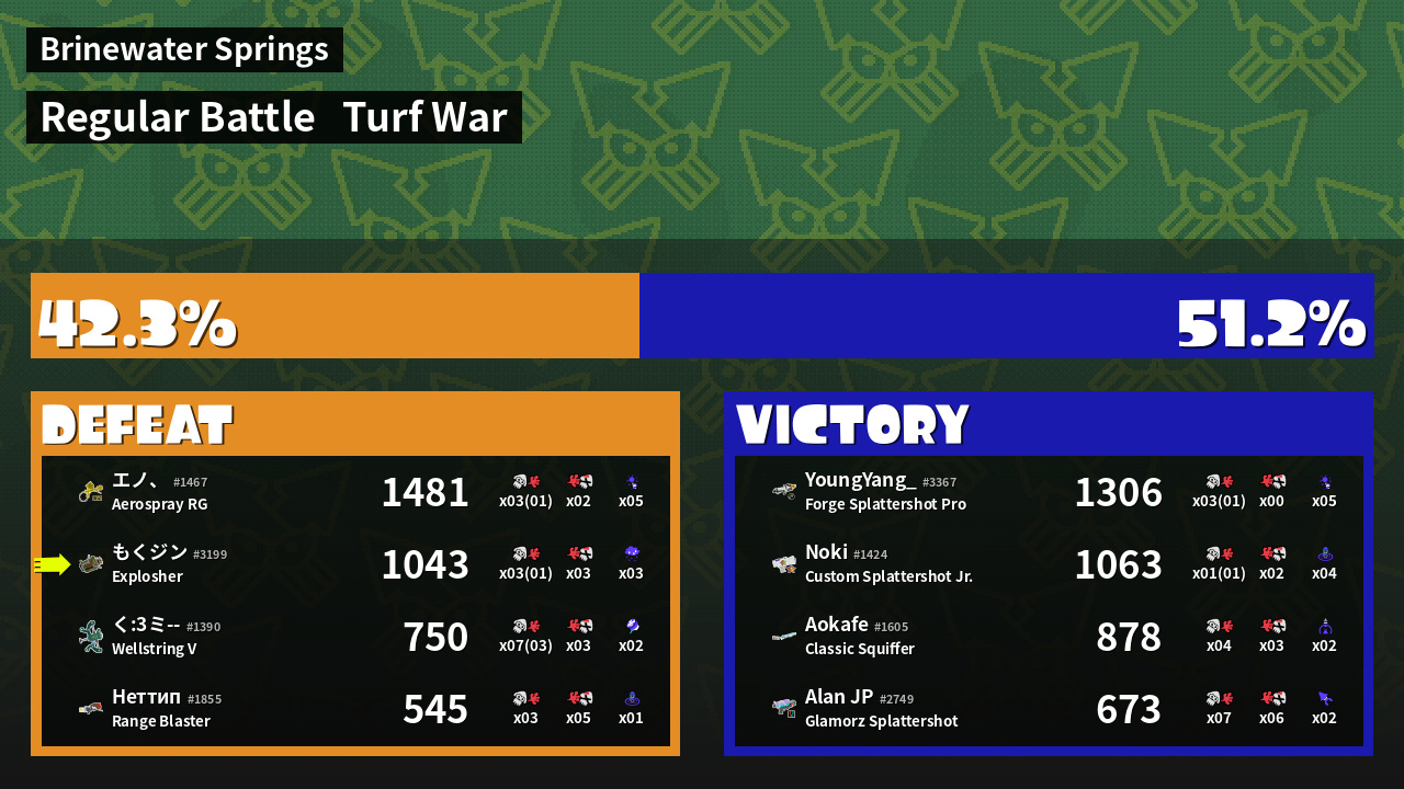 | Weapon | Explosher ( Point Sensor / Ink Storm) | ||