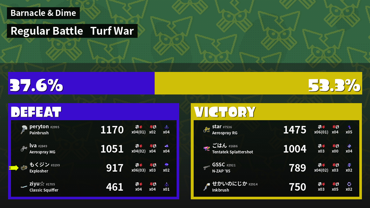 | Mode | Turf War - Regular Battle | ||