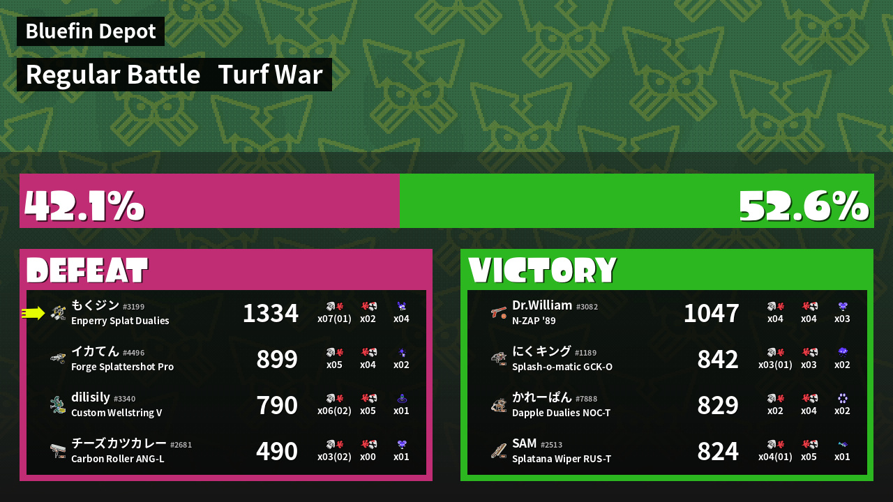 | Weapon | Enperry Splat Dualies ( Curling Bomb / Triple Splashdown) | ||