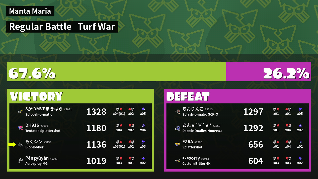 | Mode | Turf War - Regular Battle | ||
