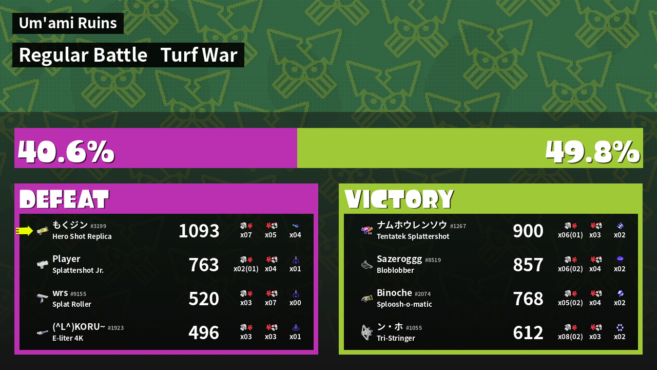 | Mode | Turf War - Regular Battle | ||