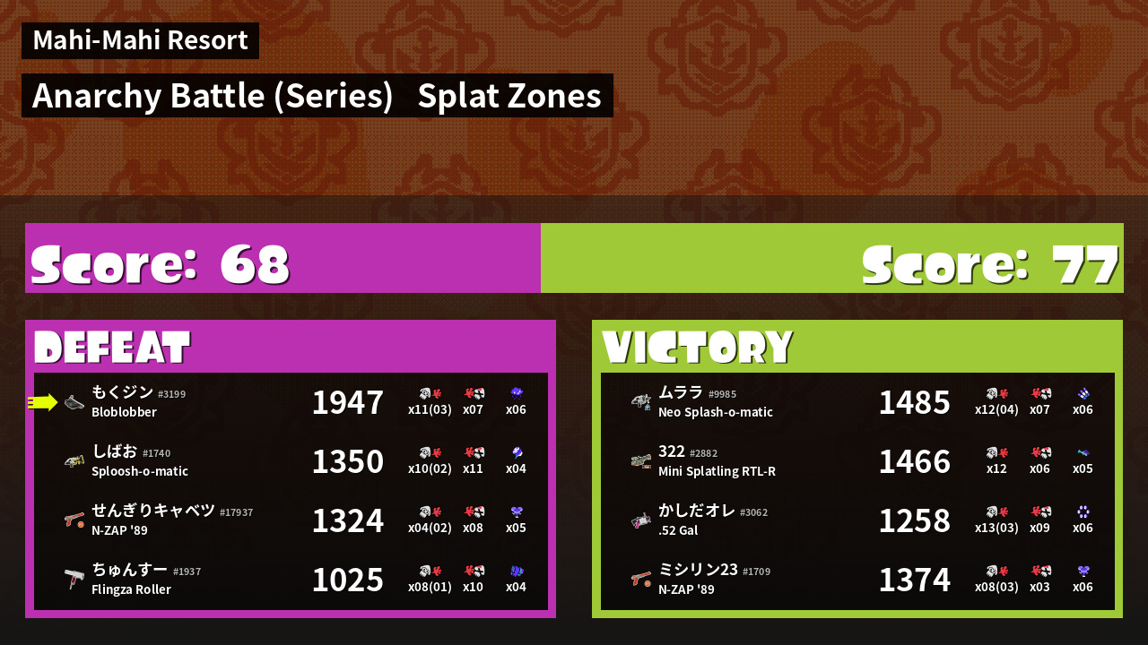 | Mode | Splat Zones - Anarchy Battle (Series) | ||