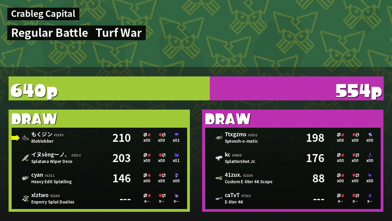 | Mode | Turf War - Regular Battle | ||