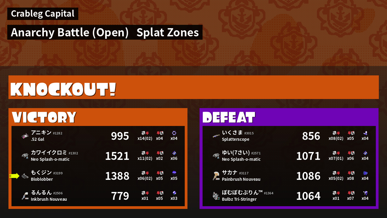 | Mode | Splat Zones - Anarchy Battle (Open) | ||