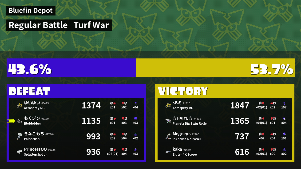 | Mode | Turf War - Regular Battle | ||
