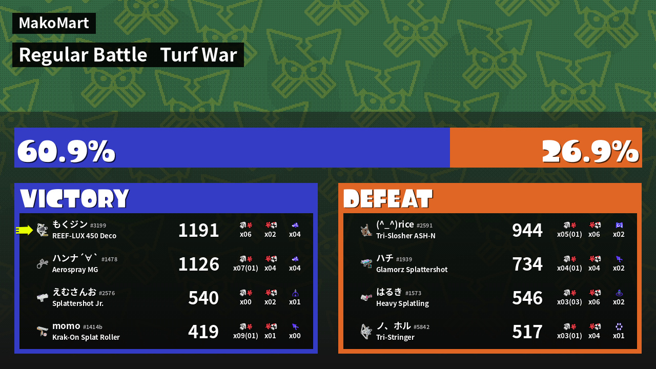 | Mode | Turf War - Regular Battle | ||