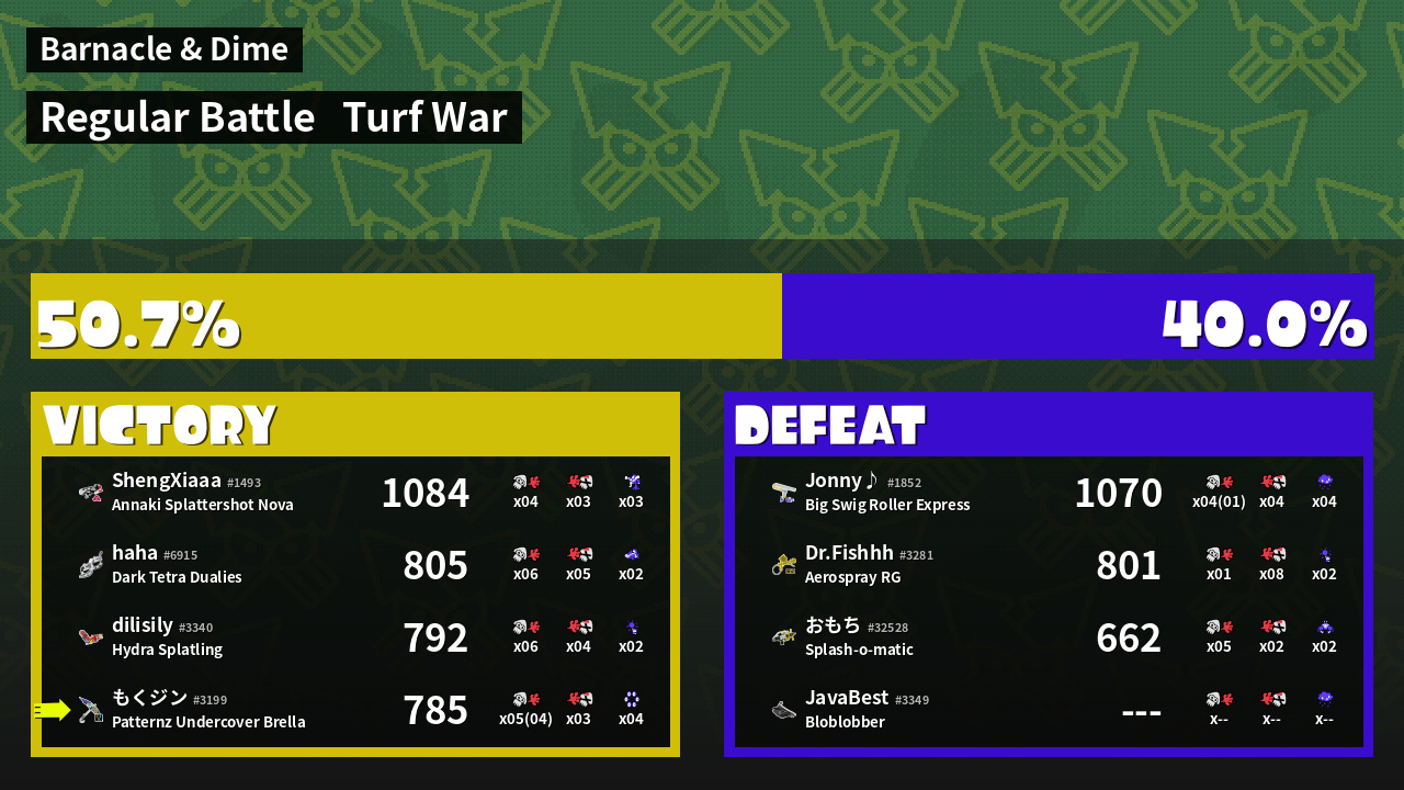 | Mode | Turf War - Regular Battle | ||