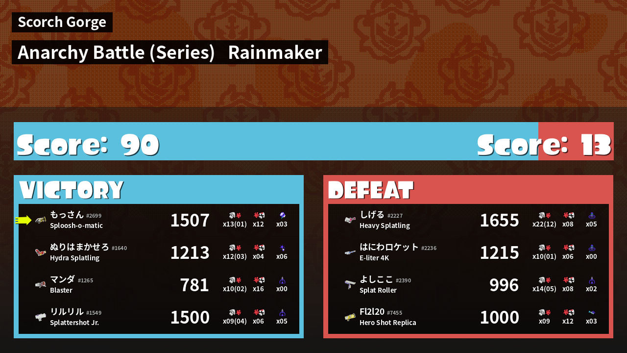 | Mode | Rainmaker - Anarchy Battle (Series) | ||
