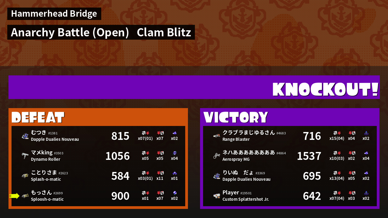 | Mode | Clam Blitz - Anarchy Battle (Open) | ||