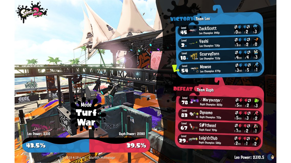 | Splatfest Power | 2,310.5 | ||||||||||||||||||||||||||||