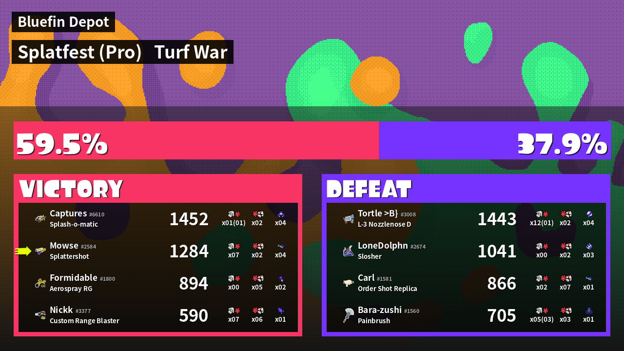 | Mode | Turf War - Splatfest (Pro) | ||