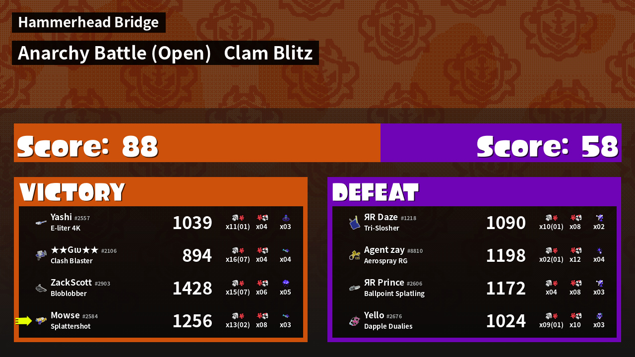 | Mode | Clam Blitz - Anarchy Battle (Open) | ||