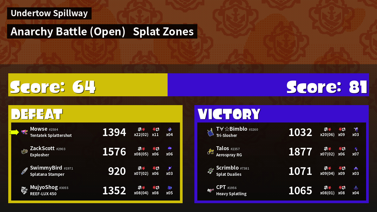 | Mode | Splat Zones - Anarchy Battle (Open) | ||