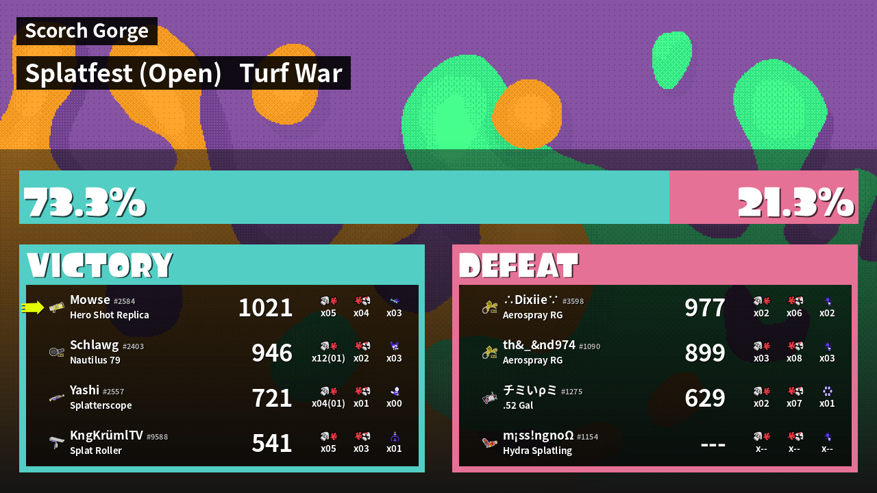 | Medals | #1 Turf Inker #1 Enemy-Base Inker #1 Ground Traveler | ||