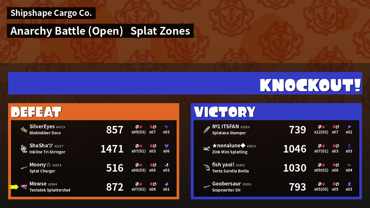| Mode | Splat Zones - Anarchy Battle (Open) | ||