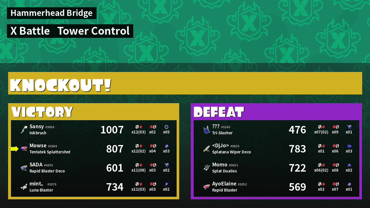 | Weapon | Tentatek Splattershot ( Splat Bomb / Triple Inkstrike) | ||