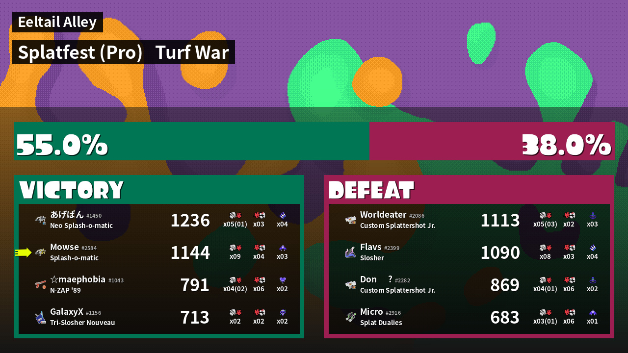 | Medals | #1 Overall Splatter #1 Enemy-Base Inker #1 Super Jump Spot | ||