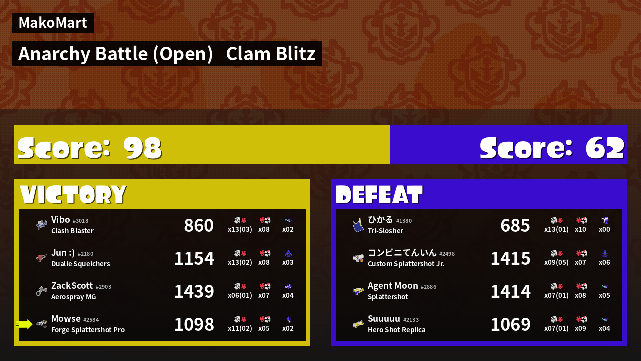 | Mode | Clam Blitz - Anarchy Battle (Open) | ||