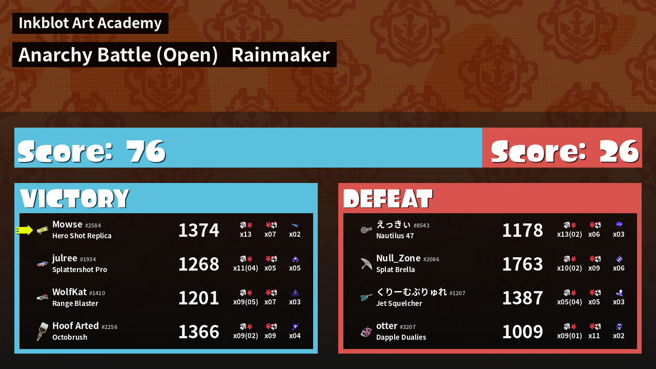 Kills / Deaths | 13 + 0 / 7 > Kill Ratio: 1.86 | ||