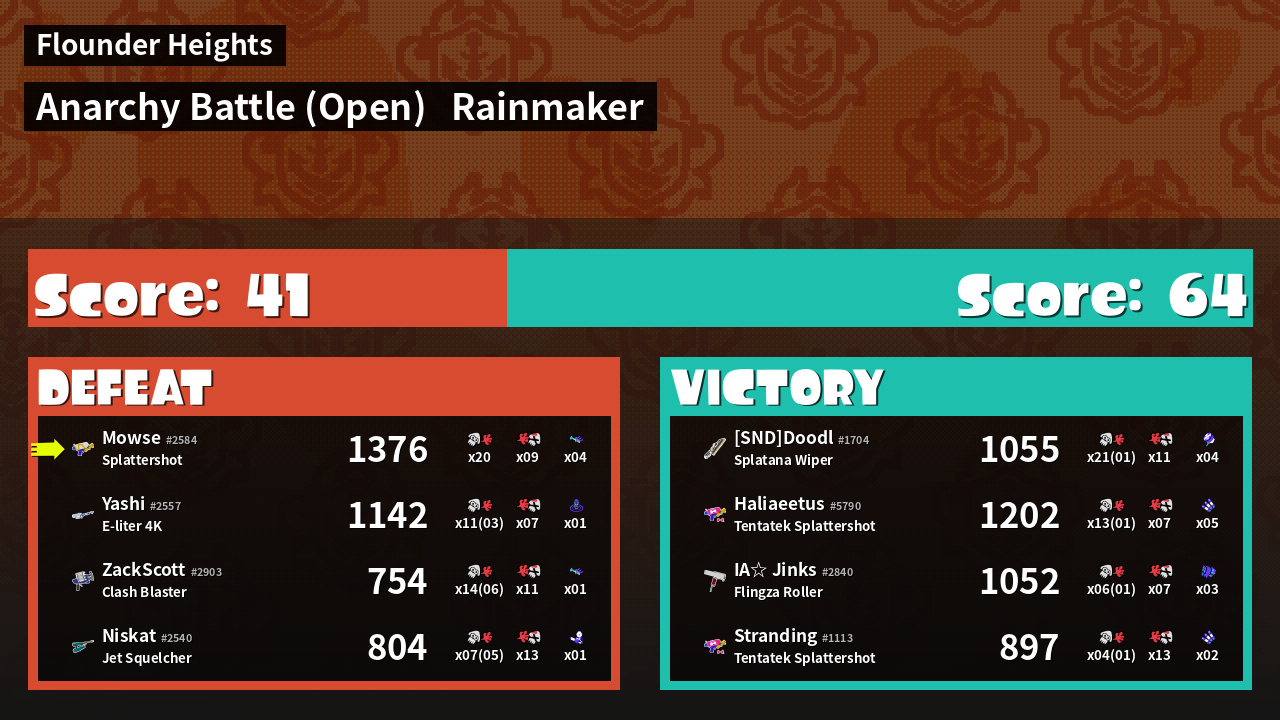 Kills / Deaths | 20 + 0 / 9 > Kill Ratio: 2.22 | ||