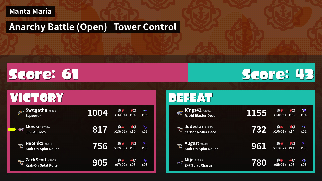 Kills / Deaths | 13 + 2 / 10 > Kill Ratio: 1.30 | ||