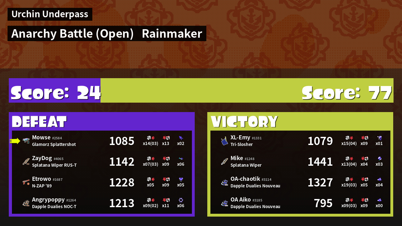 Name | Weapon | Inked | ![]() |