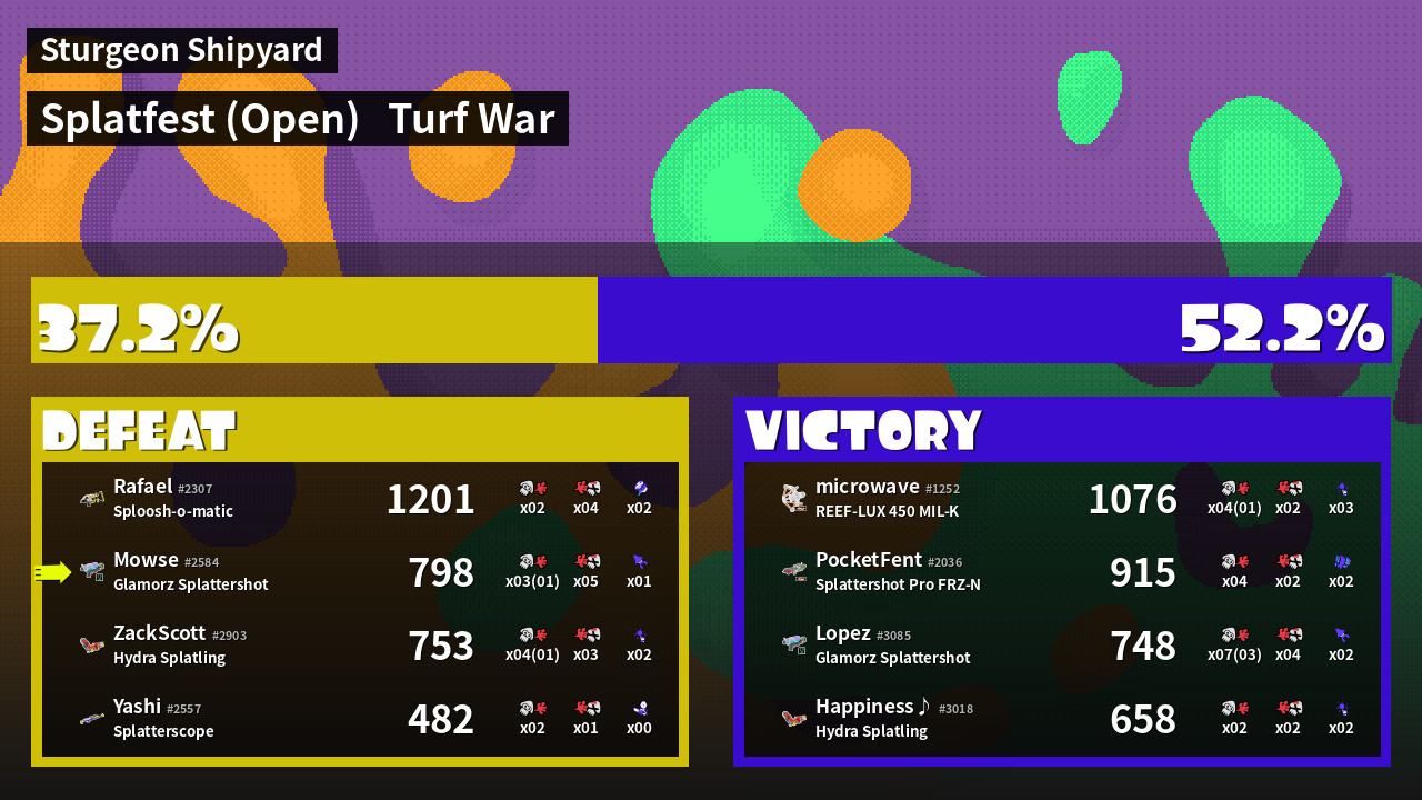 | Medals | #1 Enemy-Base Inker #1 Splat Assister First Splat! |