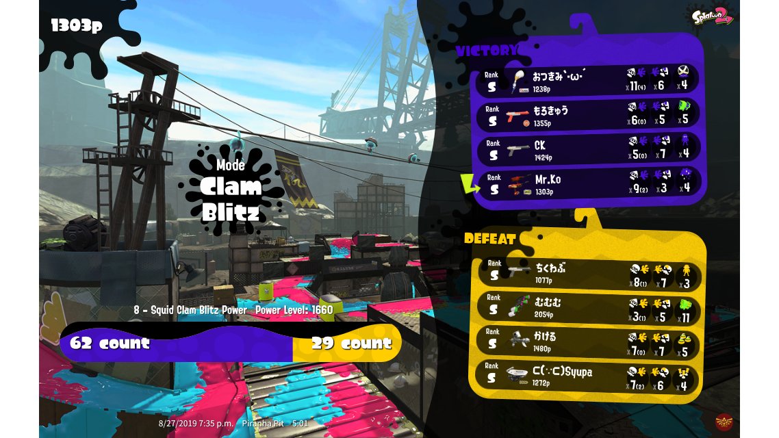 | Mode | Clam Blitz - Ranked Battle | ||||||||||||||||||||||||||||||||||
